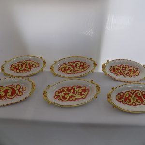 centro tavola misure 56×48 cm con decoro giallo e fondo blu effetto invecchiato
